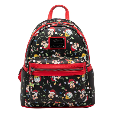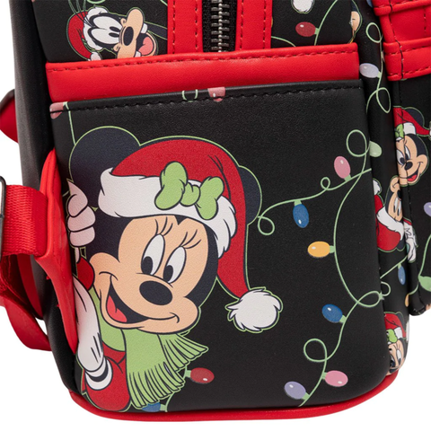 10" Disney - Mickey & Friends Christmas Lights Glow in the Dark Faux Leather Mini Backpack Bag Loungefly Exclsuive