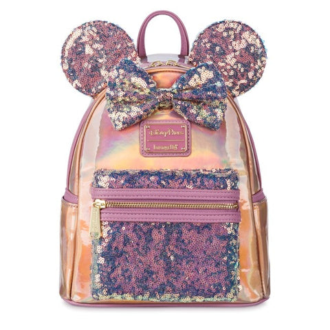 10" Disney Parks - Minnie Mouse EARidescent Sequin Faux Leather Mini Backpack Bag Loungefly Exclusive