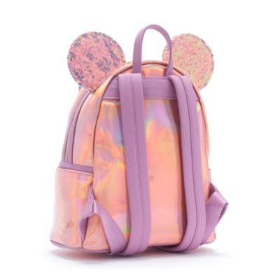 Minnie's glamour and fashion sense takes on a pink EARidescent hue with this stunning backpack by Loungefly. Featuring sequined Minnie ears, bow, and pocket, this bag's compact silhouette makes it easy to carry your essentials around in style.