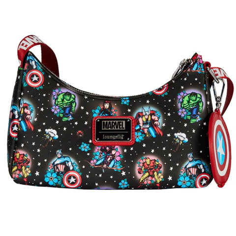 6" Marvel - Avengers Floral Tattoo with Coin Bag Faux Leather Crossbody Bag Loungefly